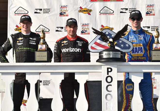 Will Power fue el vencedor de la competencia disputada en Pocono por segundo año consecutivo. Además, esta victoria fue la tercera en la temporada. Segundo terminó su compañero de equipo Josef Newgarden, a 0.5268 de segundos. También es el triunfo número 32 de Power en Indy, rompiendo un empate que tenía con Dario Franchitti y Paul Tracy por noveno lugar en la lista de todos los tiempos.