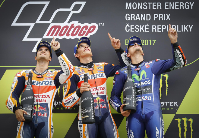 MotoGP – Brno 2017 – Dani Pedrosa – Marc Marquez – Maverick Vinales en el Podio | Motores a Pleno ® ::: 34º Aniversario / 25 años en internet :::