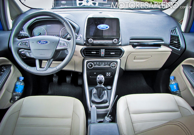 Adicionalmente, la Nueva EcoSport presenta un cluster totalmente rediseñado, incorporando una pantalla color de 4,2” para las versiones Freestyle y Titanium; nuevo diseño y ubicación de los controles y salidas de aire; puertos USB; renovado diseño de volante con distintos tipos de comandos, y una nueva consola central con apoya-brazos. En su versión Titanium, ofrece como novedad tapizados de cuero color claro.