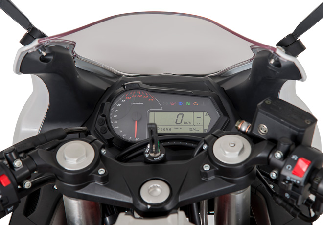 La ergonomÃa de esta moto está estudiada para que la postura de conducción sea lo más cómoda y eficiente posible, ya que cuenta con un amplio carenado y un asiento con material anti-deslizante con sÃmil de carbono. Sumado a esto, la 302R viene equipada con un sistema de iluminación de LED y tablero digital.