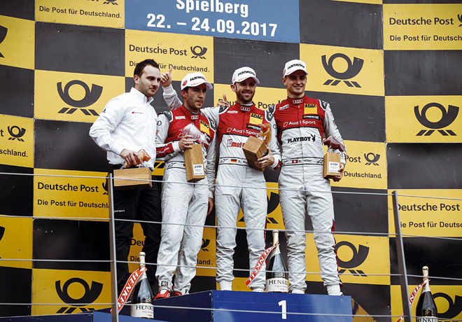 El alemán René Rast fue el vencedor de la competencia disputada hoy en el Red Bull Ring en Spielberg. En un dramático final, Rast llegó a la bandera de cuadros después de 39 vueltas por delante de sus compañeros de la marca Audi, su compatriota Mike Rockenfeller y el suizo Nico Müller.