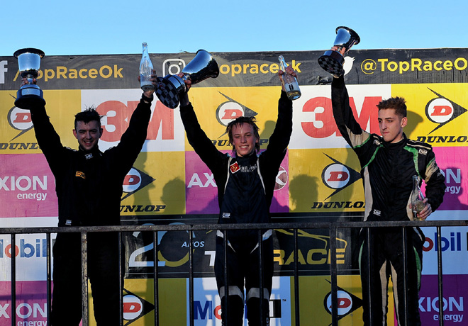 En una exigida maniobra Rosso pasó a Battaglino y asà subÃa al tercer escalón del podio. La bandera de cuadros determinó la victoria de Hernán Palazzo; segundo fue Hernán Satler y tercero Santiago Rosso. Guido Moggia, Tadeo Vicente, Maximiliano Battaglino, Yango Rajczakowski, Esteban Fernández, Ezequiel Bastidas y Gabriel Gandulia completaron las diez mejores posiciones finales.