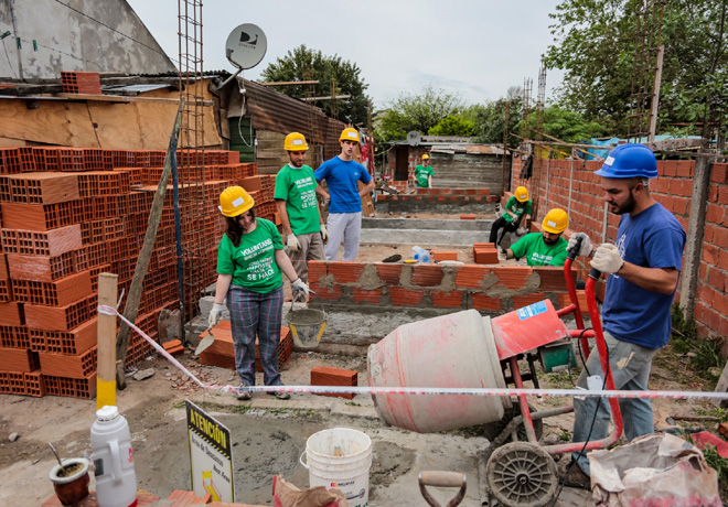 La Fundación Hábitat para la Humanidad, cuyo objetivo es la construcción de hogares a bajo costo para familias carenciadas, recibió a un grupo de voluntarios de Ford que participó en la construcción húmeda de una vivienda en la localidad de La Matanza.