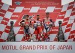 Andrea Dovizioso se batió en duelo con Marc Márquez bajo la lluvia, y con su victoria ahora está a 11 puntos en el campeonato. Segundo finalizó el español, y tercero Danilo Petrucci (Ducati). Ambos demostraron que quieren la corona. Emulando el duelo que vivieron en Austria; pero esta vez en el asfalto mojado del Twin Ring Motegi, Andrea Dovizioso (Ducati Team) y Marc Márquez (Repsol Honda Team) volvieron a hacer chocar sus codos. El final fue el mismo, y la forma en la que se produjo fue idéntica. Emularon, esta vez bajo la lluvia de Motegi, la batalla de Austria con un final idéntico que permite a Dovi quedarse a 11 puntos.