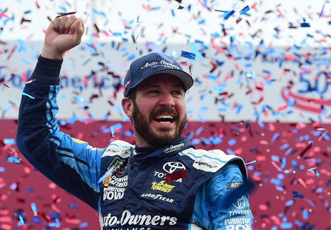 Martin Truex Jr. inició la Serie de la Copa NASCAR de 12 contendientes al título anotando su segunda victoria de postemporada en el Charlotte Motor Speedway. El piloto de Toyota lideró 91 de las 337 vueltas para ganar la cuarta de 10 carreras de los playoffs. Truex sobrevivió a un par de reanudaciones en las últimas vueltas para asegurar su sexta victoria de la temporada; su segunda en la pista de 1,5 millas, y la número 13 de su carrera en NASCAR.