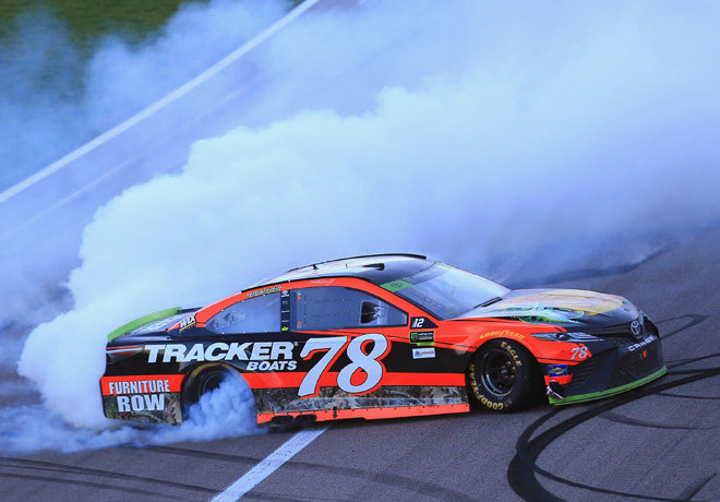 Truex lideró 91 de las 267 vueltas en Kansas, llevando al equipo Toyota Row Racing a su séptima victoria de la temporada y la 14ª personal en NASCAR. Truex se recuperó de una sanción por una violación en un reinicio y una parada en boxes no programada para ajustar una rueda floja.