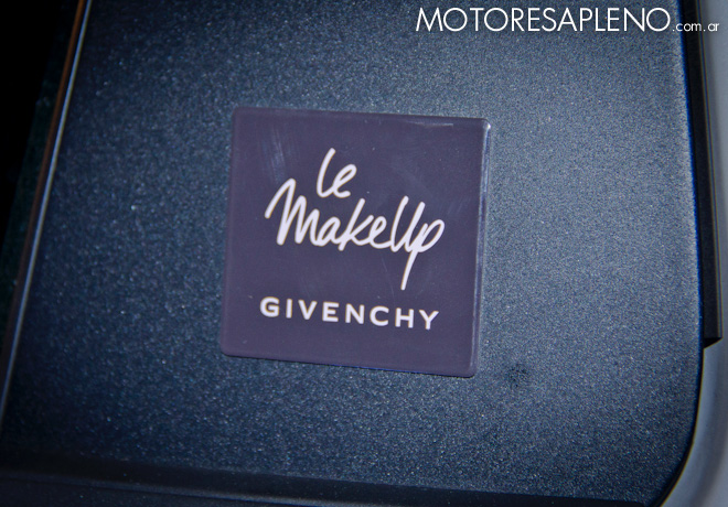 El apoya-brazos central en cuero y con impresos en grabado láser el logo de la Maison, cumple las veces de un neceser funcional a la cartera de la mujer moderna. En una sutil combinación, que retoma el color rosa anodizado de la pancha frontal, propone el encuentro con un kit de productos Givenchy que, por supuesto, es parte del equipamiento de serie que lo hace único: una máscara de pestañas Noir Couture, unos polvos compactos Prisme Visage y un rojo de labios Le Rouge. Ideal para retocar el maquillaje y, sin perder el estilo, disfrutar de una conducción placentera y emotiva.
