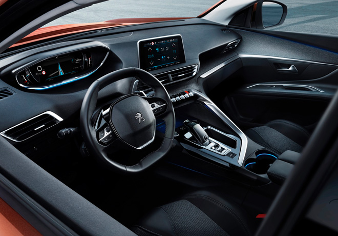 Entrar en el nuevo 3008 es ingresar a un ambiente original y novedoso, donde se destaca en primer lugar la última evolución del Peugeot i-Cockpit, que cambió los códigos del puesto de manejo del automóvil. Con él, todo parece optimizado para el placer y la concentración del conductor en un formato high-tech: con un volante aún más compacto, rediseñado para ofrecer un mejor agarre; un campo visual aún más despejado, y mayor habitabilidad. La atención en la elección de los materiales y el cuidado por los detalles, como terminaciones cromadas y decoraciones negro brillante, resulta atractiva por su elegancia y calidad.