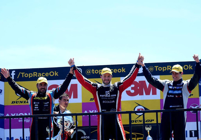 La primera competencia del TopRace en Oberá quedó para Agustín Canapino con el Mercedes-Benz del equipo Sportteam, luego de una cerrada lucha que mantuvo con Mariano Altuna (Chevrolet Cruze) durante los 37 minutos que duró la carrera, a quien aventajó por sólo 747 milésimas. Tercero terminó Diego Azar, a 1.029.