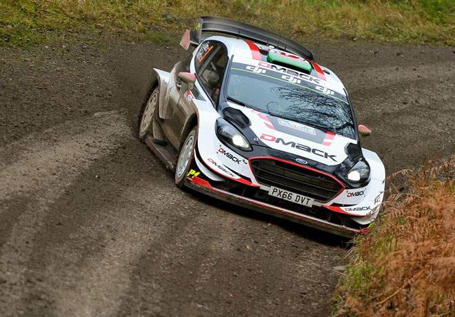 El galés ganó tres de las seis especiales resbaladizas en los bosques del centro de Gales para aventajar a su compañero de equipo en M-Sport, Ott Tanak, por 24.6 segundos. Sébastien Ogier se acercó un paso más hacia su quinto título mundial en el tercer lugar, ya que el equipo británico copa las tres primeras plazas.