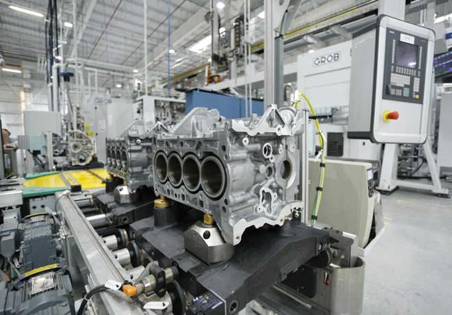 Esta moderna planta, llamada SGE (Small Gasoline Engine), tiene una superficie de 16.970 m2; cuenta con 56 robots, y produce un total de más de 250 motores diarios. Está dividida en cinco áreas: de tapa de cilindro y submontaje; de tapa de cilindro y línea mecanizada; área para el trabajo del block; línea de montaje; y, por último, armado de kit.