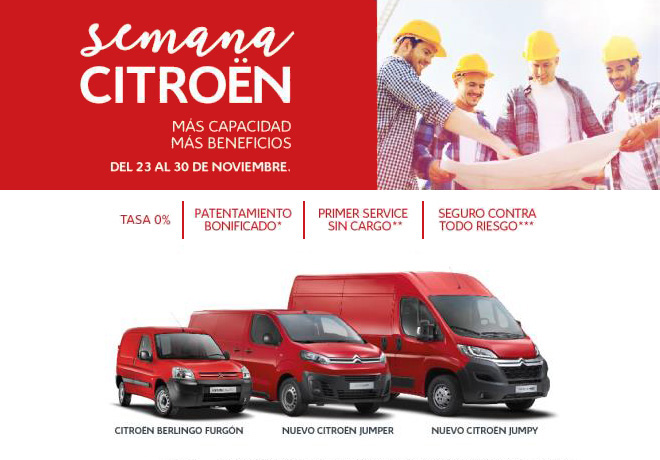 Desde el jueves 23 hasta el jueves 30 de noviembre se llevará a cabo la “Semana Citroën Utilitarios” de toda la gama de vehículos comerciales en todos los Concesionarios Oficiales, con las mejores condiciones y facilidades para acercar los diferentes modelos de Berlingo, Jumpy y Jumper a los clientes particulares o corporativos.