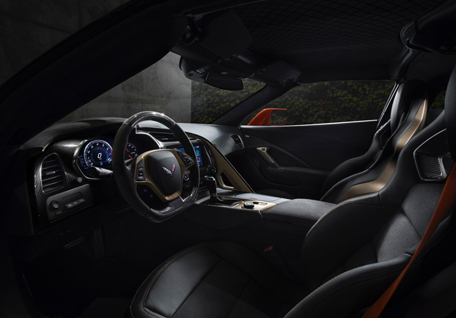 El nuevo paquete de diseño complementa la tradición del Corvette ZR1 que ofrece el máximo rendimiento con refinamiento y distinción de diseño. El habitáculo centrado en el conductor incluye asientos estándar tapizados en cuero, con inserciones de microfibra de gamuza como opción.