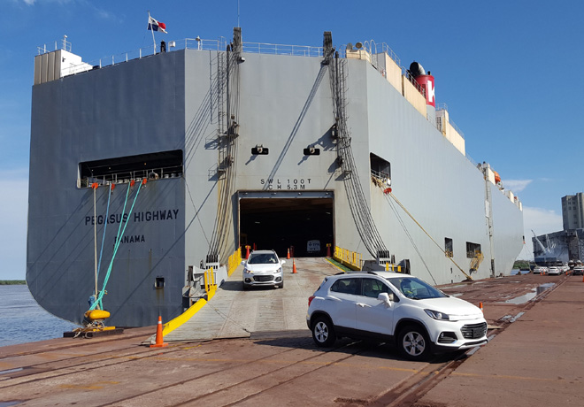 Los vehículos desembarcados fueron modelos Chevrolet Onix y Prisma, provenientes de Brasil, y Chevrolet Tracker proveniente de México.