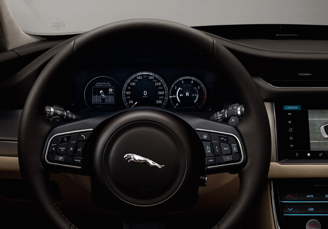 El habitáculo es una perfecta combinación de modernos materiales y lujosos acabados, la tradicional artesanía de Jaguar y la tecnología de vanguardia con características tales como el cuadro de instrumentos con pantalla TFT y el innovador Sistema de Infoentretenimiento “InControl Touch”.