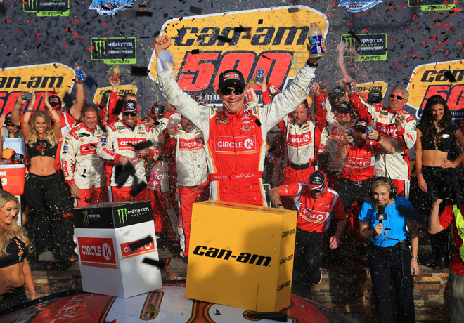 Chase Elliot, que necesitaba ganar para poder pasar a la siguiente ronda, continuó dando batalla y logró pasar al frente del pelotón, por delante de Kenseth, pero faltando 10 vueltas para el final, el piloto de Toyota doblega al de Chevrolet sentenciando el resultado.