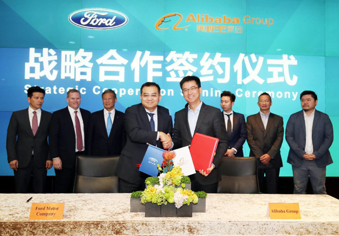 Jim Hackett, Presidente y CEO de Ford Motor Company, y Daniel Zhang, CEO del Grupo Alibaba, firmaron una carta de intención entre las dos compañías por los próximos tres años. Durante este período, ambas empresas van a explorar de manera conjunta áreas de cooperación que están redefiniendo la industria automotriz en China y alrededor del mundo. Ford va a cooperar con las cuatro unidades de negocio de Alibaba en sistemas de operación, nube de datos, marketing digital y venta online, respectivamente. Adicionalmente, explorarán conjuntamente diferentes áreas de cooperación incluyendo servicios de movilidad, conectividad, inteligencia artificial y marketing digital.