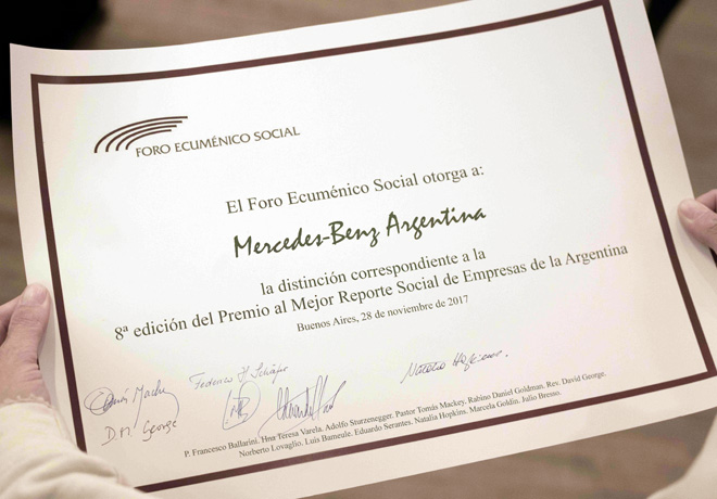 La quinta edición del Reporte de Sustentabilidad de Mercedes-Benz fue distinguida con el premio al Mejor Reporte Social de Empresas, que otorga el Foro Ecuménico Social.