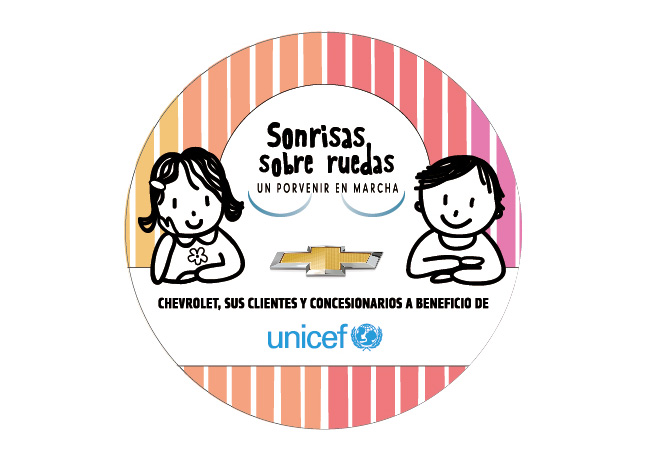 Desde hace 15 años Chevrolet apoya a UNICEF y sus diversas iniciativas como “Un Sol para los Chicos”, la “Carrera UNICEF por la Educación” y desde fines de 2013 con “Sonrisas sobre Ruedas, un porvenir en marcha”, el programa de recaudación de fondos que, por primera vez a nivel mundial, es impulsado por una automotriz, sus concesionarios y clientes de la mano de UNICEF.