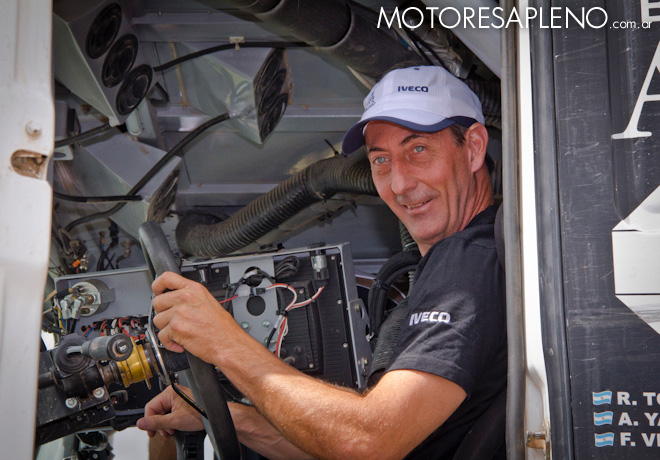Con todas las medidas de seguridad para la ocasión: casco y bien sujetados en las butacas mediante los cinturones de seguridad, nos ubicamos en la cabina del Iveco Powerstar 4×4 para acompañar al piloto cordobés, ocupando las butacas del centro y derecha en las que en el Dakar 2018 se sentaron Adrián Yacopini y Ricardo Torlaschi.