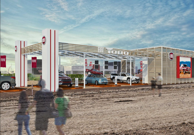 En el stand de la marca italiana se exhibirá una versión “Moporizada” del nuevo Fiat Cronos, y también se expondrán versiones de las pick ups Fiat Toro y Fiat Strada, junto al 500X “Cross”, y estará una pista de pruebas para testear la Fiat Toro Volcano.