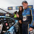 Se disputó hoy la competencia en el óvalo de Martinsville que ayer fuera suspendida por el temporal de nieve en Virginia. Esta fue la primera carrera que se posterga por la nevada de la principal división de NASCAR desde 1993. Y Clint Bowyer rompió una racha negativa de 190 carreras consecutivas sin victoria. Su primer triunfo para SHR también fue el primero en la pista de 0.526 millas y el noveno de su carrera en la Copa Monster Energy NASCAR Cup. El triunfo más reciente de Bowyer habÃa sido el 13 de octubre de 2012 en Charlotte Motor Speedway.
