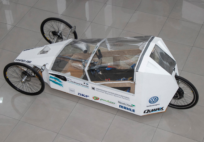El vehículo diseñado enteramente por los alumnos participará de la categoría prototipo propulsado por motor eléctrico y batería ion litio. Este monoplaza tendrá tres ruedas: una trasera tractora y dos ruedas delanteras directrices. El proyecto tiene un enfoque pro ambiental y sustentable utilizando energía eléctrica y no contaminante para la propulsión del prototipo, y con un chasis construido íntegramente en madera de Kiri, provenientes del árbol de más rápido crecimiento, que consume más CO2 y entrega más O2 al medio ambiente y, como si esto fuera poco, crece en cualquier tipo de suelo.