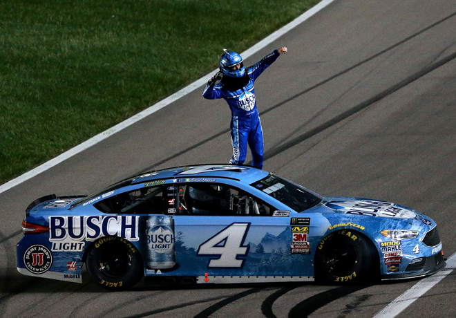 Kevin Harvick consiguió su quinta victoria de la temporada en Kansas al superar al actual campeón de la Serie Martin Truex Jr. en la penúltima vuelta. Largando desde el sexto lugar y persiguiendo al lÃder de la carrera Truex Jr. después de un reinicio en la vuelta 259 de 267, Harvick encontró la velocidad suficiente en el carril superior de la pista y pasó Truex Jr.