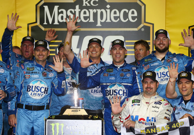 Al ganar su segunda carrera consecutiva y su quinta en 12 disputadas en esta temporada, Harvick venció a Truex Jr. por 0.390 segundos. La victoria fue la tercera de Harvick en el Kansas Speedway de 1.5 millas.