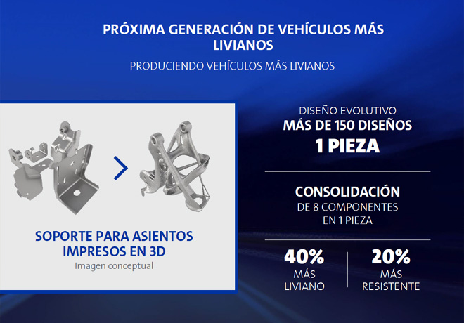 GM está liderando la industria hacia una nueva generación de vehículos más livianos. Esta nueva tecnología de diseño ofrece una reducción significativa en la masa de los vehículos y oportunidades de consolidación de piezas que no podría haberse logrado a través de los métodos de optimización de diseño tradicionales.