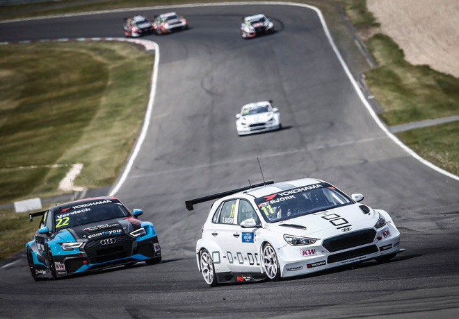Thed Björk obtuvo su primera victoria de la temporada en la tercera competencia del fin de semana en Alemania. El sueco se convirtió en el séptimo ganador diferente de la temporada del WTCR cada vez más competitiva luego de convertir su pole position en una convincente victoria. Con el Hyundai i30 Björk resistió los embates de Frédéric Vervisch. El belga casi tomó la delantera en la tercera y última vuelta; pero el campeón del Mundial de Turismos 2017 pudo controlarlo.