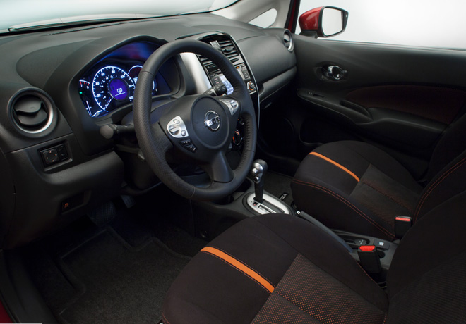 Un spoiler trasero y paragolpes de estilo deportivo son parte de la personalidad del nuevo Note SR; a lo que se suma, también, el ya conocido volante deportivo forrado en cuero inspirado en el 370z. Además, su tapizado tiene detalles de diseño y los espejos retrovisores cuentan con luz de giro.