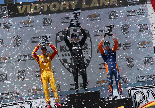 Scott Dixon, cuatro veces campeón de la IndyCar Series y ganador de 2017 en Road America, se recuperó de su peor posición de inicio en cinco largadas en esta pista (octavo) para terminar tercero.