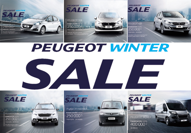 La campaña, denominada “Peugeot Winter Sale”, comprende una tasa de 9,9% a 24 meses con $ 250.000.- de monto de financiación para las familias de los modelos 208; 2008; 308; 408 y Partner VU. El utilitario Boxer también cuenta con una oferta dentro de esta campaña, con una financiación hasta $ 400.000.- a 36 meses.