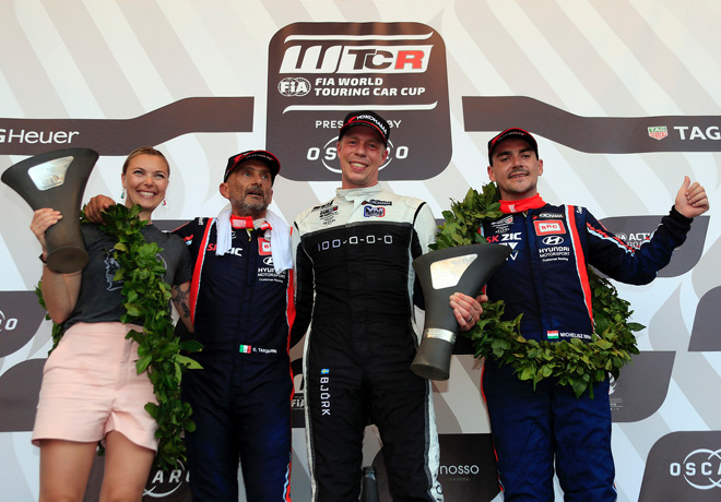 Thed Bjork dejó su sello en la Carrera 3 del WTCR de Portugal con una gran victoria de principio a fin. El piloto del Hyundai i30 voló desde la pole position y se llevó su segundo triunfo de la temporada. Bjork acumuló mucha ventaja desde el comienzo, mientras Tarquini pasaba a Michelisz y nunca perderÃa esa posición. Ambos completarÃan un podio todo Hyundai.
