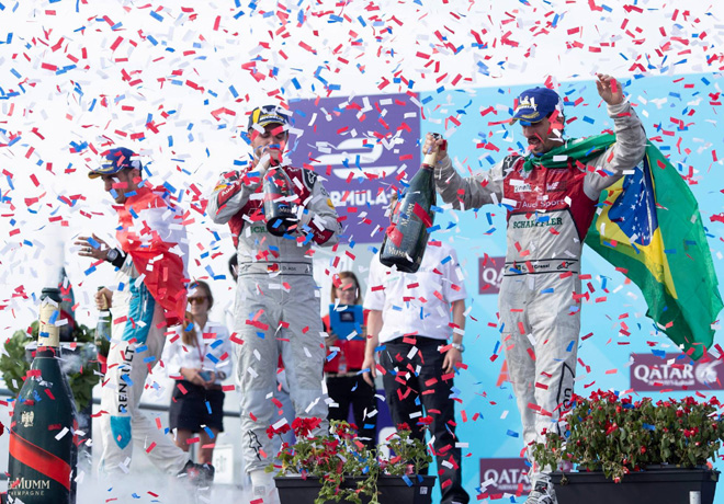 En un caótico comienzo de carrera, que finalizó con la victoria de Lucas di Grassi (Audi Sport Abt Schaeffler’s), quien aseguró su segundo triunfo de la temporada, mientras que Jean-Eric Vergne (Techeetah) con su quinto puesto se consagró campeón de la Fórmula E en su cuarta temporada. Daniel Abt (Audi Sport ABT Schaeffler) y Sebastien Buemi (Renault e.Dams) completaron el podio.