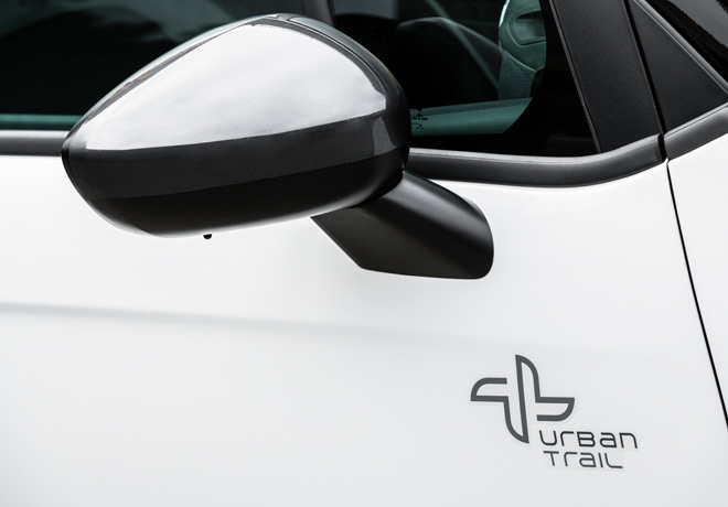 En su interior el bordado en los asientos delanteros lo identifican 100% Urban Trail junto a una amplia oferta de equipamientos de serie que incluye: dirección eléctrica, climatizador automático digital, sistema multimedia touchscreen de 7” con sincronización para smartphones, entre otros.