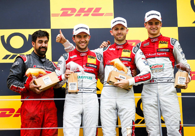 Mike Rockenfeller y Nico Muller, otros dos pilotos de Audi, terminaron segundo y tercero respectivamente, mientras que el lÃder del torneo, Gary Paffett, logró un punto por terminar décimo, en tanto que su compañero de equipo y rival por el tÃtulo, Paul Di Resta, finalizó cuarto.