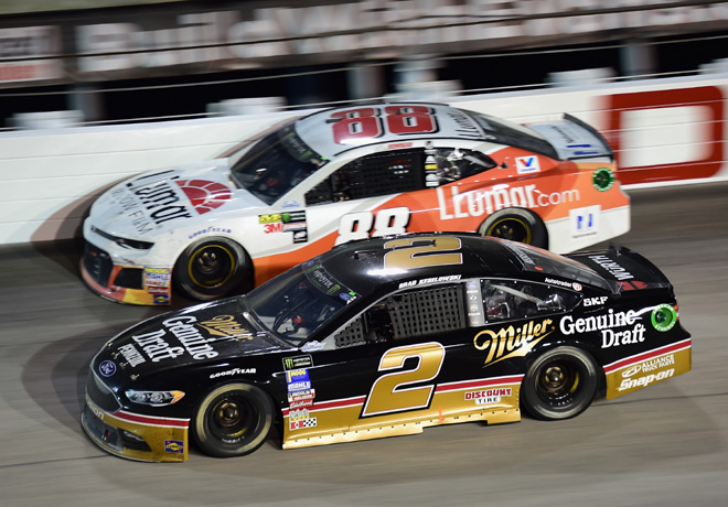 Keselowski controló el reinicio final en la vuelta 348 y se alejó, mientras que Larson descendió a la tercera posición y tuvo que defenderse del acoso de Kevin Harvick para mantener ese puesto. Fue Joey Logano quien superó a Larson (habÃa liderado 284 vueltas de las 367, además de ganar la primera y segunda etapa) por el segundo lugar en la vuelta 352, lo que le dio al equipo Team Penske un resultado de 1-2, y además obtuvo su primer triunfo en Darlington desde 1975.