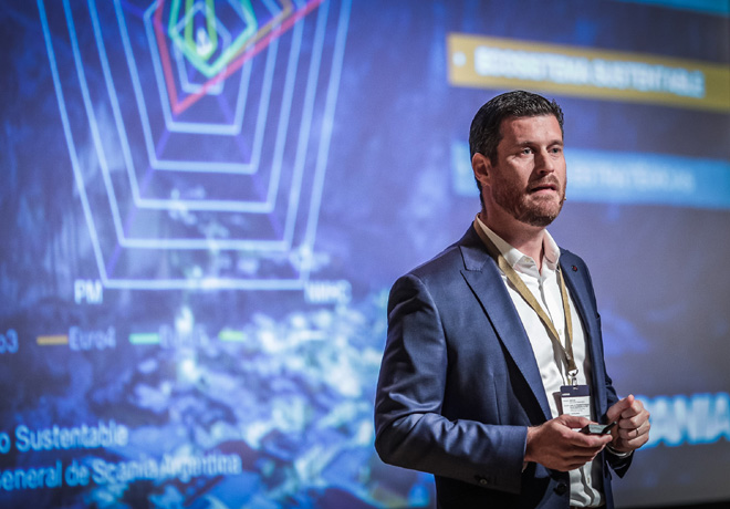 «En materia de combustibles alternativos y electrificación, Scania es la empresa con el porfolio de productos más amplio a nivel mundial, como bioetanol y otros”, destacó Leonard.