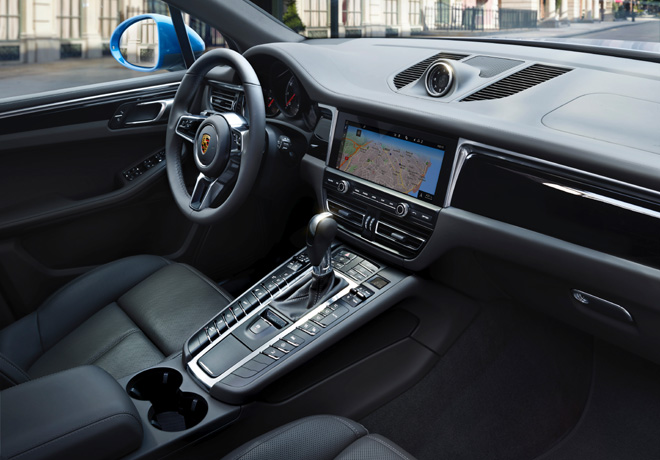 El Macan ofrece una amplia variedad de posibilidades digitales a través del nuevo sistema Porsche Communication Management (PCM). La pantalla táctil de alta resolución tiene ahora 10,9 pulgadas de ancho (antes 7,2 pulgadas). Igual que en el Panamera y el Cayenne, la interfaz de usuario puede ser adaptada a los requisitos personales por medio de menús predefinidos. Completamente interconectado de serie, el nuevo sistema dispone de conexión preparada para teléfono móvil, dos interfaces de audio y control inteligente por voz y un punto de acceso WLAN.