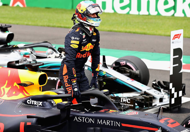 Daniel Ricciardo (Red Bull Racing) consiguió la pole position para el Gran Premio de México que se disputa en el autódromo Hermanos RodrÃguez, aventajando por apenas 26 milésimas a su compañero Max Verstappen, y ambos compartirán la primera fila de partida.