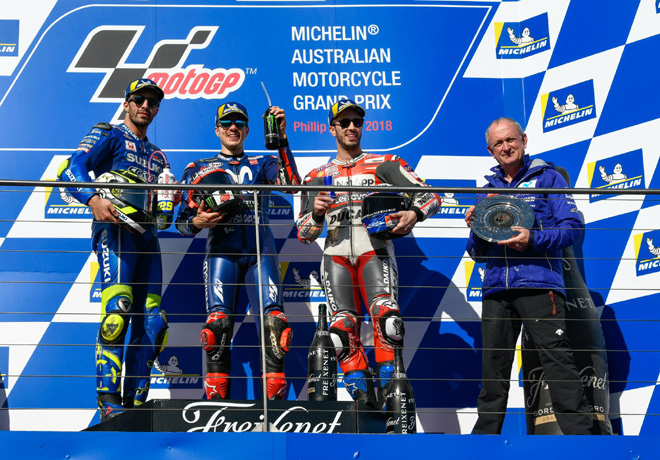 Finalmente el de Suzuki impuso su ritmo para ser segundo y su compatriota de Ducati completó el podio, decantando el subcampeonato en su favor. Mención aparte merece la carrera del talaverano, que acabó cuarto en su debut con la Desmosedici oficial. Álex Rins (Team Suzuki Ecstar) ya se está acostumbrando a colarse entre los mejores y volvió a ser quinto.