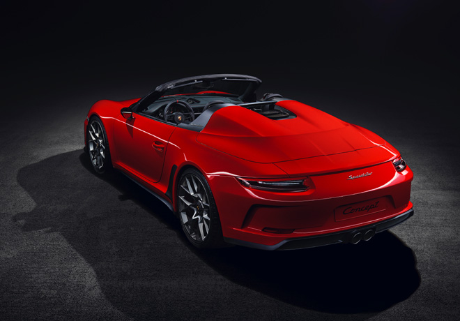 Todos los componentes de la carrocerÃa, al igual que la tecnologÃa empleada, son idénticos en ambos 911 Speedster Concept. Esto también incluye el marco del parabrisas acortado, con sus paneles superiores rebajados, y ventanillas laterales más pequeñas, además de un capó trasero de fibra de carbono con la doble cúpula por detrás de los asientos. Ambos autos disponen de una lona protectora ligera fijada con botones tipo Tenax, en lugar de una capota blanda abatible.