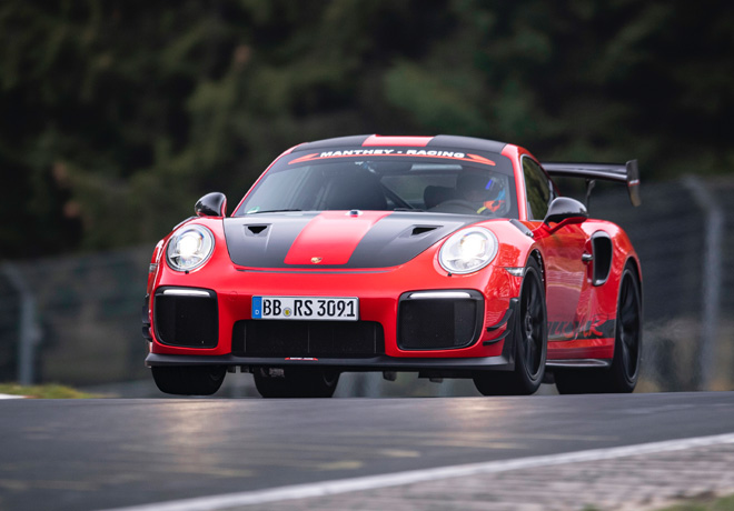 Porsche estableció otro nuevo récord en el Circuito Norte de Nürburgring, en cooperación con Manthey-Racing. El pasado jueves 25 de octubre de 2018, el Porsche GT2 RS MR de 700 caballos de potencia (515 kW) completó una vuelta al trazado de 20,6 kilómetros de longitud en 6’40″3. Ningún otro vehículo homologado para circular por las calles ha sido más rápido en ‘El Infierno Verde’. Lars Kern fue quien se puso al volante de este deportivo, que fue especialmente puesto a punto por los ingenieros de Porsche y los expertos de Manthey-Racing para el ‘Nordschleife’. El piloto de pruebas de Porsche ya había logrado una vuelta récord en septiembre de 2017, con un Porsche 911 GT2 RS de serie.
