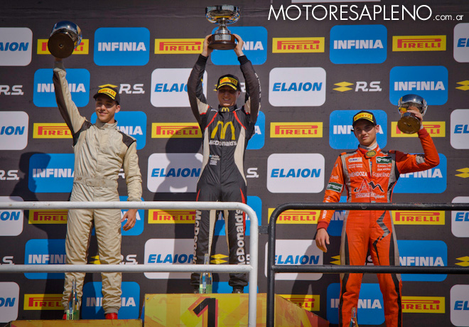Nicolás Blanchard salÃa desde la pole; pero no tuvo una partida efectiva y perdió varias posiciones. Y al cumplirse el primer giro Mateo Polakovich era el puntero. En la segunda vuelta, un incidente entre Ezequiel Bastidas y Nicolás Moscardini (primero y segundo en el Campeonato) los dejó fuera de competencia. Fue cuando Moscardini perdió el control de su auto y embistió a Bastidas, haciéndolo dar dos vueltas campana hasta quedar su monoplaza con las ruedas para arriba. El incidente terminó sin mayores consecuencias para Bastidas, quien salió de su auto con la ayuda del propio Moscardini. Por dicha acción Moscardini fue excluido por maniobra peligrosa.