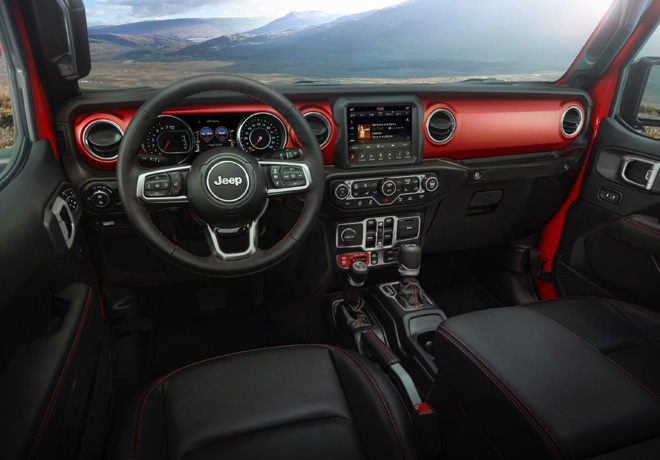 El interior del nuevo Jeep Gladiator 2020 combina estilo exclusivo, versatilidad, confort y uso intuitivo. Materiales de alta calidad y de precisión artesanal proliferan por toda la cabina.