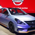 Puntos característicos de la marca Nissan se muestran en los faros en forma de bumerang y en la parrilla V-motion. El color azul claro, presente en el fondo de la parrilla y en el marco de la defensa trasera, recuerda que el modelo es parte de la familia de vehículos eléctricos de Nissan.