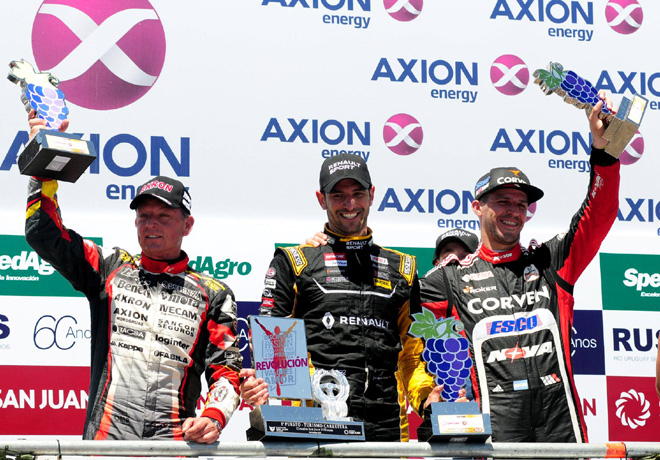 Facundo Ardusso fue el vencedor de la Final del Turismo Carretera disputada en el circuito sanjuanino de Villicum. Con esta victoria el piloto de Las Parejas queda a solamente 7 unidades de quien es ahora el puntero de la Copa de Oro, MatÃas Rossi, que fue tercero por detrás de Guillermo Ortelli. Quien habÃa llegado a San Juan como lÃder, AgustÃn Canapino, apenas pudo clasificar décimo, y ahora está tercero a 8 puntos de Rossi.