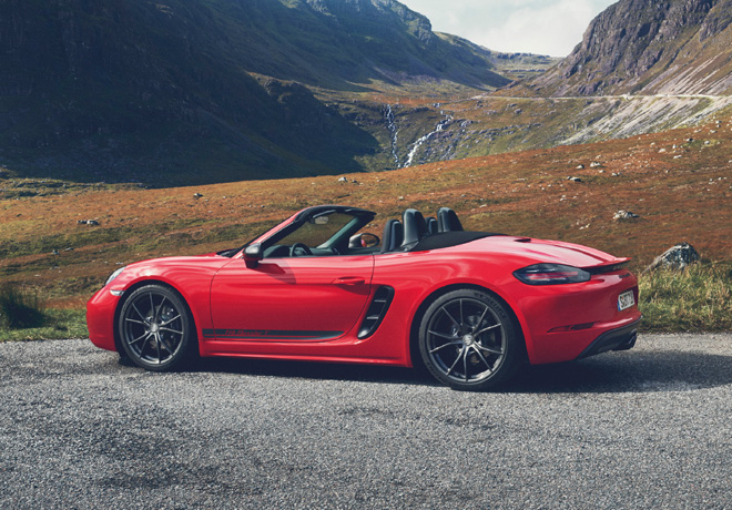 Con el 718 T, Porsche ha transferido el diseño purista del 911 T de 1968 a su gama de biplazas deportivos. El nuevo modelo de Boxster y Cayman combina el motor bóxer sobrealimentado por turbo de cuatro cilindros y 300 caballos de potencia (220 kW) con una experiencia de conducción única.